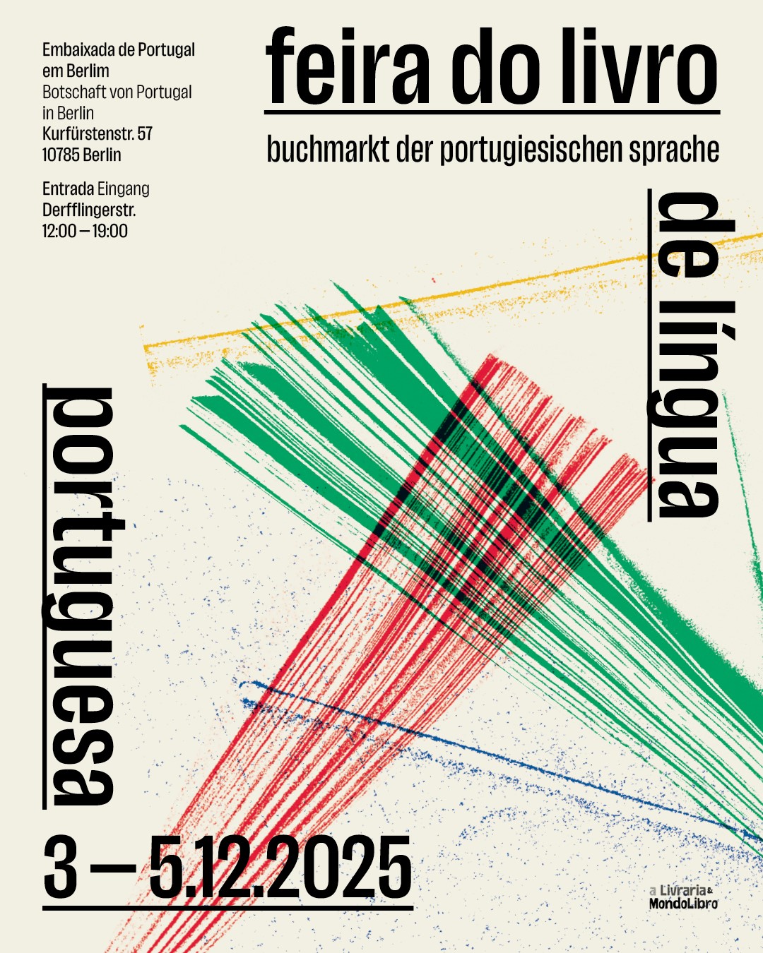 “A segunda edição da Feira do Livro de Língua Portuguesa tem lugar de 3 a 5 de dezembro nas novas instalações da Embaixada de Portugal (Kurfürstenstr. 57, 10785 Berlim – entrada pela Derfflingerstr)