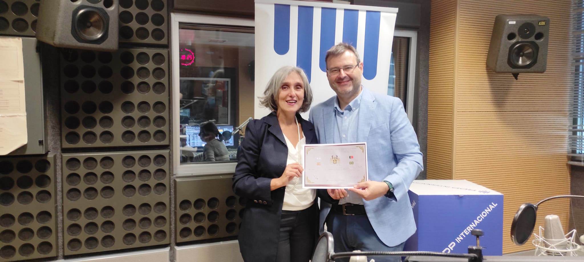 A jornalista Paula Machado Oliveira recebeu mais uma distinção. Foi um anúncio feito de surpresa no estúdio de emissão enquanto a jornalista emitia o programa Câmara dos Representantes.