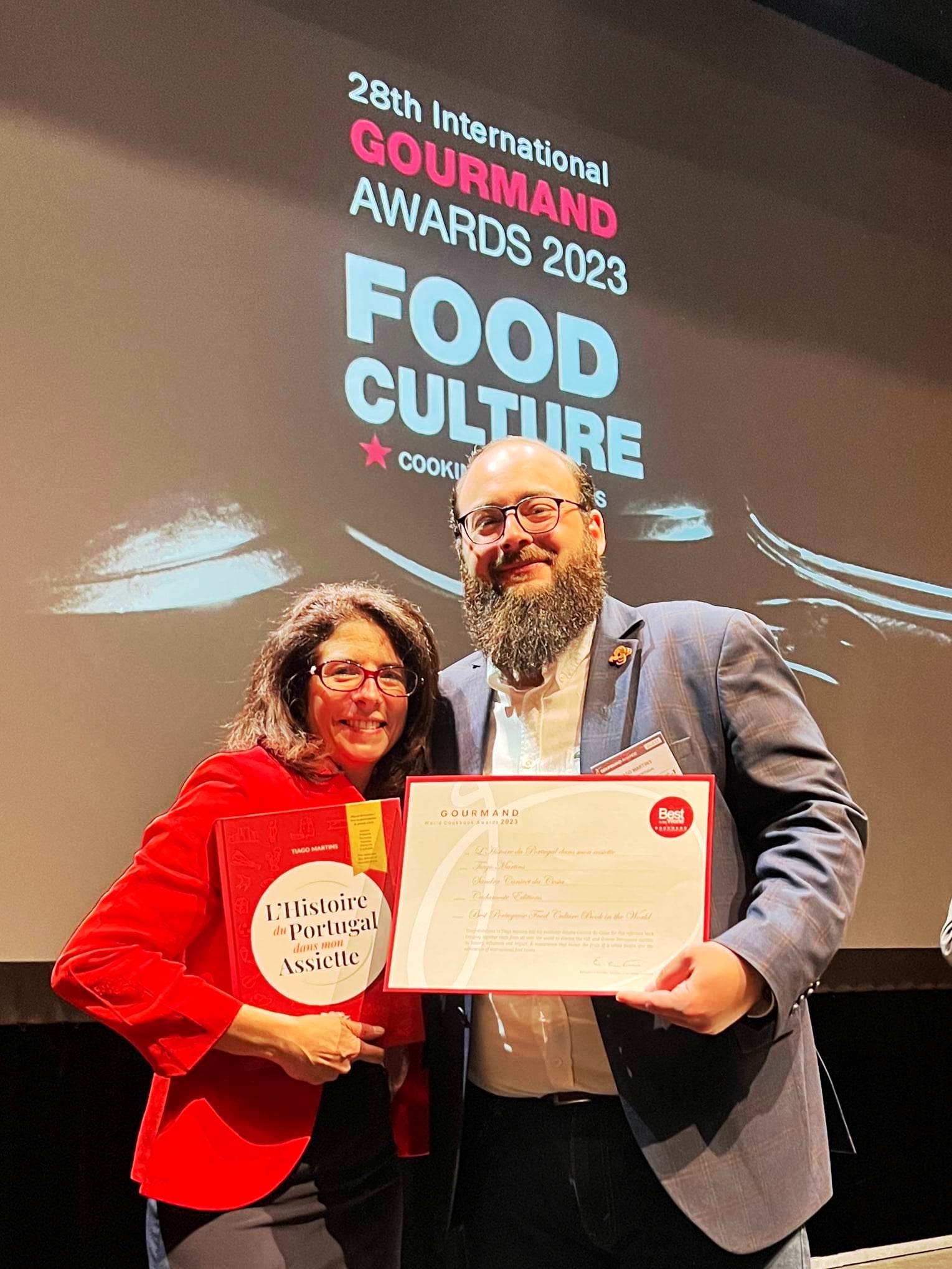 Tiago Martins, luso-francês, filho de pais aportugueses e com raízes em Barrenta arrecadou o “óscar” dos livros de culinária, com “L`Histoire du Portugal dans mon Assiette” (A História de Portugal no Meu Prato) em Umea, na Suécia. Receitas acompanhadas por factos históricos, curiosidades e anedotas são os ingredientes deste livro em que participam mais de 60 chefs portugueses, alguns a viverem no estrangeiro. Ou seja, a solidariedade da diáspora na gastronomia considera Sandra Canivet, a editora nascida em França e também filha de pais portugueses. Sandra Canivet desafiou Tiago Martins a escrever este livro, agora distinguido com o prémio Gourmand, admite a tradução para português. Sandra Canivet da Costa criou a Cadamoste Editions., editora em França que tem lançado livros sobre Portugal.