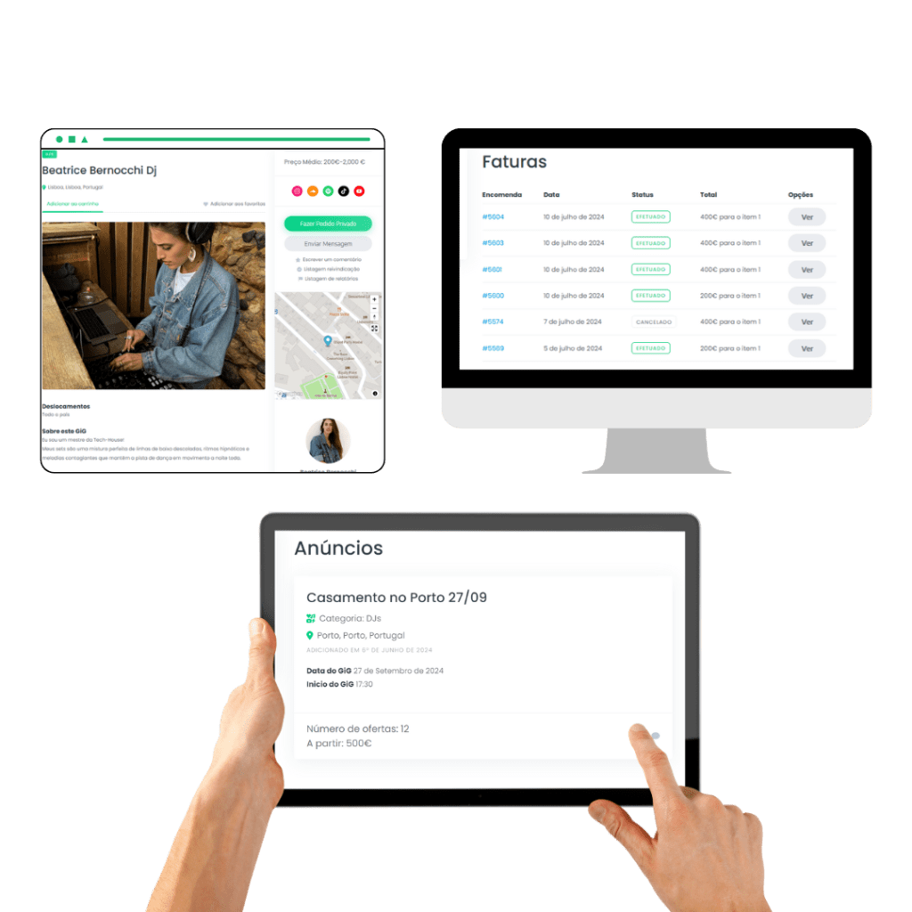 Facilita a comunicação, pagamentos e contratação de talentos para eventos.